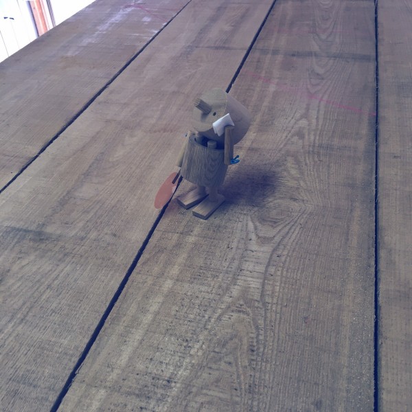 さてお次は1600×900のテーブル◎天板の板を並べて木の表情を見て…よし!いってみよう〜!