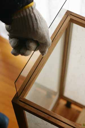 まずは、和紙を張った枠を はめ込みます。 |