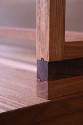 | 【1】差し込んであるブラック・ウォールナットの棒を‥‥ | 【2】手前に引き抜いてゆきます‥‥(ここがミソです) |