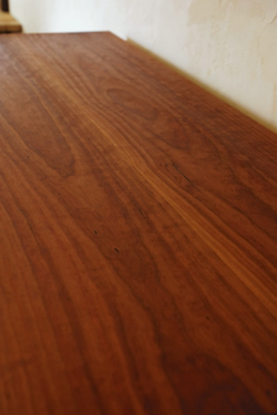 天板は「チェリー」の木。 木目が細かく水気にも強いので、 キッチンまわりに向いていると思います。