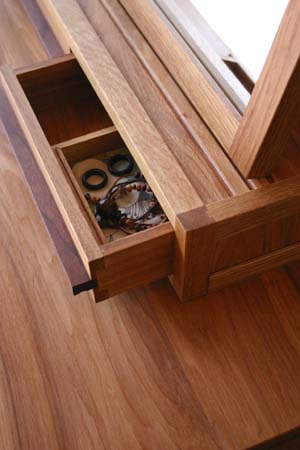 鏡台には、指輪などアクセサリーがしまえる |