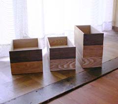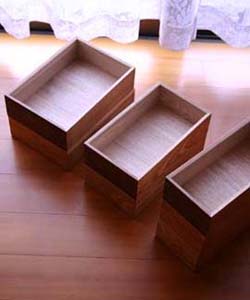 積み重ねた時、前後左右にずれにくくする ために底には傾斜がついています。 箱が浮いているようにも見え、綺麗です。 |