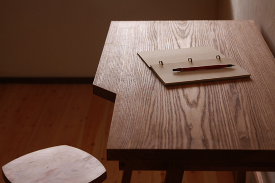切り欠かれた天板部分の下から出てくるのは、とても小さな抽斗(ひきだし) お気に入りの道具をしのばせて・・・。