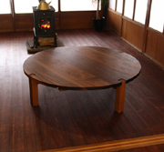 テーブルのサイズは、直径1M20cm。 4人でゆったりとお使いいただけるサイズです。 大きいテーブルですが、高さが低いため圧迫感はなく、 落ち着いた雰囲気があります。