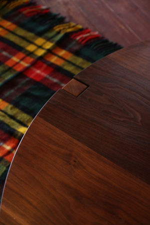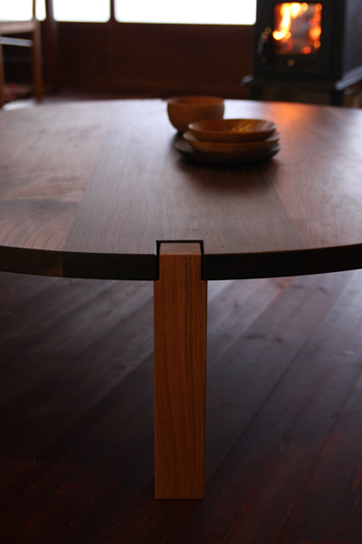 お馴染みのデザイン、"plain-table"の円卓バージョン。 天板にでている脚がポイントになって、全体を引き締めてくれます。