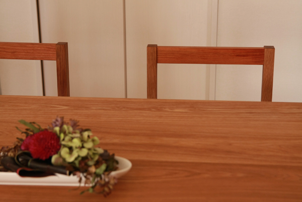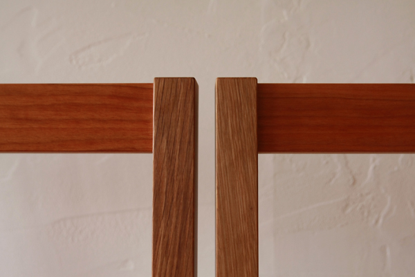 いそべ家のplain-chairの"笠木"(背が当たる部分)は、 赤みのかかったチェリーの木になっています。 このワンポイントはご夫婦からのご提案。 いつものチェアーより、ほんのり可愛らしい印象を与える、 不思議なチェリーの笠木。