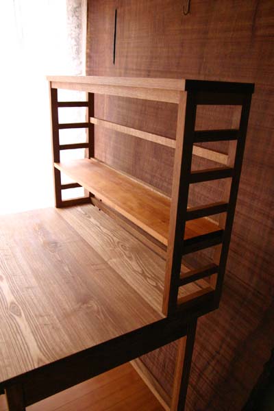 あかねちゃんの本棚と同じく、机から取り外しても 本棚のみで使えるようになっています。 今回は、棚幅をもう少し細かく変えれるようにしました。