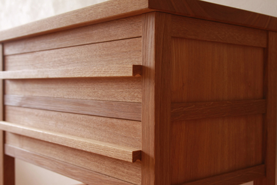 抽斗の取手は構造の材料と同じ"オーク"。 シックで落ち着いた仕上がりになりました。