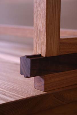 | 【1】差し込んであるブラック・ウォールナットの棒を‥‥ | 【2】手前に引き抜いてゆきます‥‥(ここがミソです) |