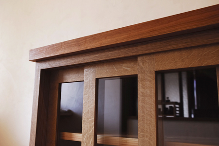 開放スペースが広くて、使いやすい三枚戸。 また、手前に開けるためのスペースもいらない引き戸は 慌ただしい台所仕事の時でも、スムーズな出し入れが魅力です。
