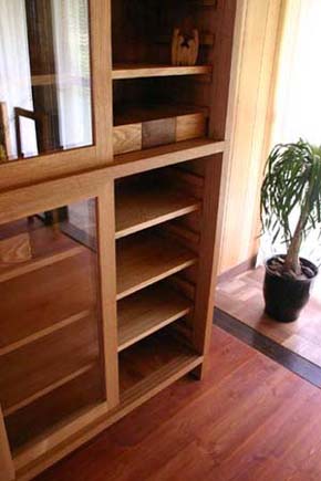 搬入のことを考えて、大きな家具はこうして分けられるよう製作しています。 |
