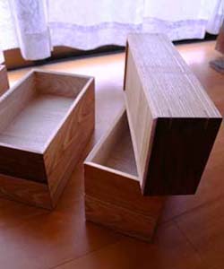 積み重ねた時、前後左右にずれにくくする ために底には傾斜がついています。 箱が浮いているようにも見え、綺麗です。 |
