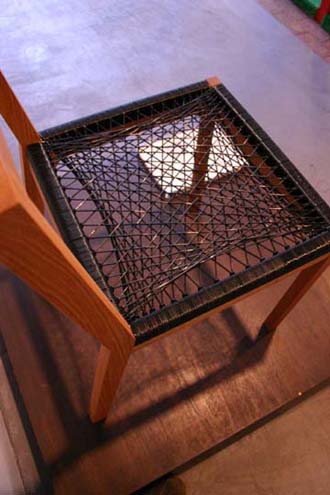 立体感のある規則的な弦の重なりが、 まるで座面にクッションが置いてあるような錯覚を起こさせる。