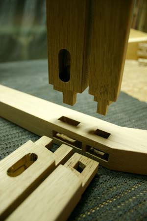 建築家・中新井 洋 氏からご依頼をいただき、製作させていただきました。 最初に図面を拝見した時、一目見て、木で作るには難しいカタチだと感じましたが、 「これを、木組みで作りたいのです。」 ・・・中新井氏のこの一言で、木組みの家具屋に火がつきました。 普段の自分達では挑戦しないほどの、この細さ。 細いながらに、できるだけ仕口を複雑に組み合わせて強度を出した結果、 想像を超えるほどの頑丈さに仕上がりました。 これぞ、木組みの勝利。