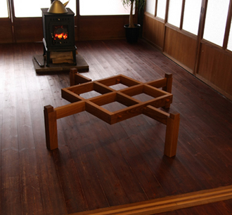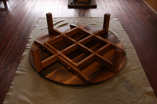 脚の構造だけでも、カッコイイ。 天板を乗せるのをためらってしまうような、 不思議なテーブルです。