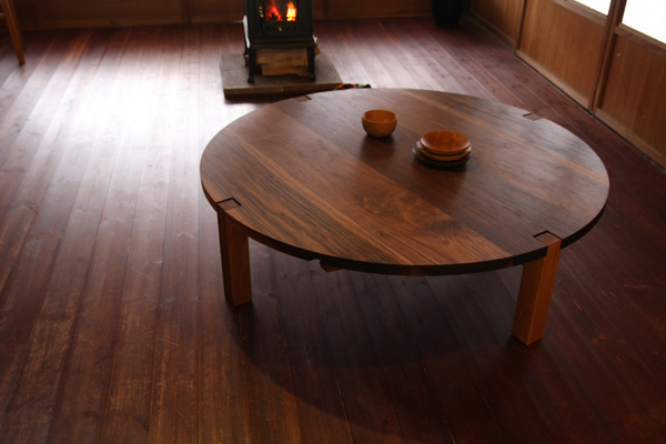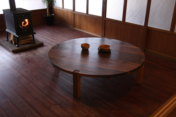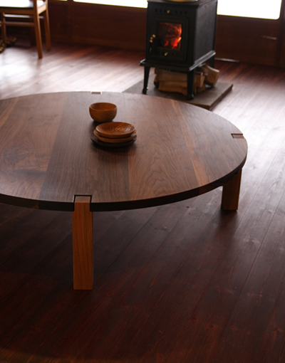 テーブルのサイズは、直径1M20cm。 4人でゆったりとお使いいただけるサイズです。 大きいテーブルですが、高さが低いため圧迫感はなく、 落ち着いた雰囲気があります。
