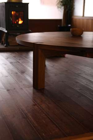 天板はブラックフォールナット。 深くて濃い色合いが特徴の、とても美しい木です。