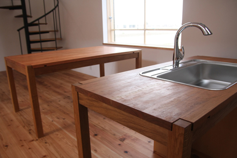 シンクは、流しの大きさを切り欠き、はめ込んであります。 |