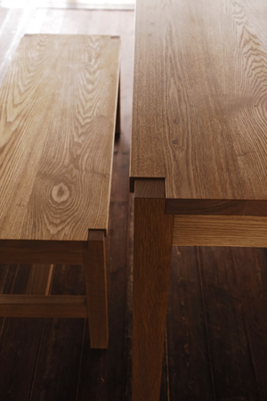 デザインはテーブルと同じ、どっしりplain-bench。 |