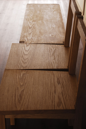 ベンチからチェアーに、木目は繋がっています。 |