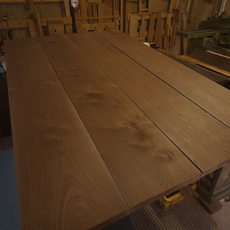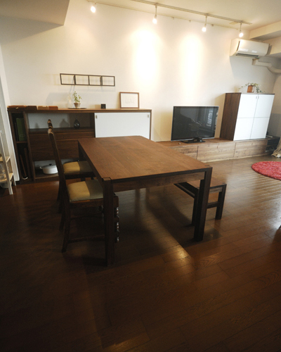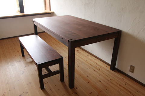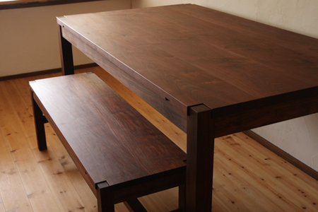 初めて製作させていただいた、全てブラックウォールナットのテーブル。 |