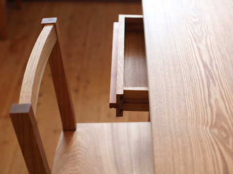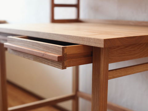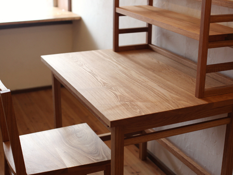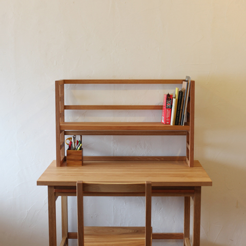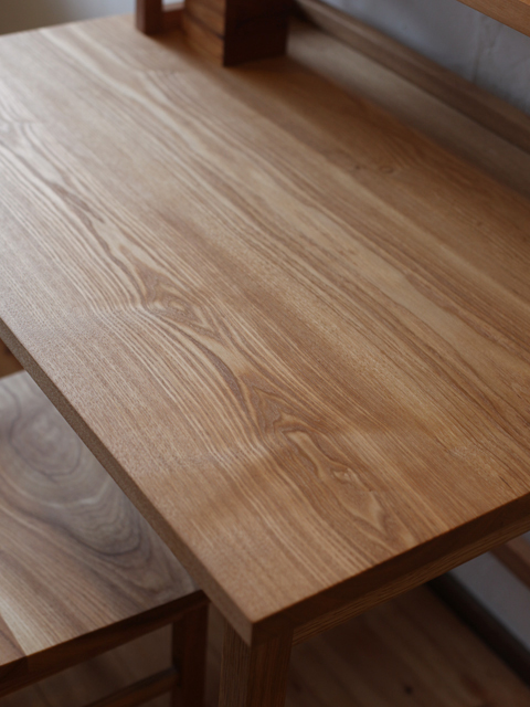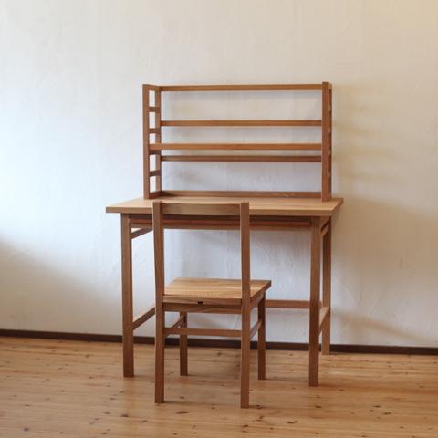 木を組んでつくると出来上がる、懐かしいような素朴な学習机。